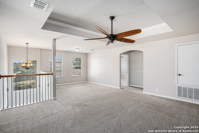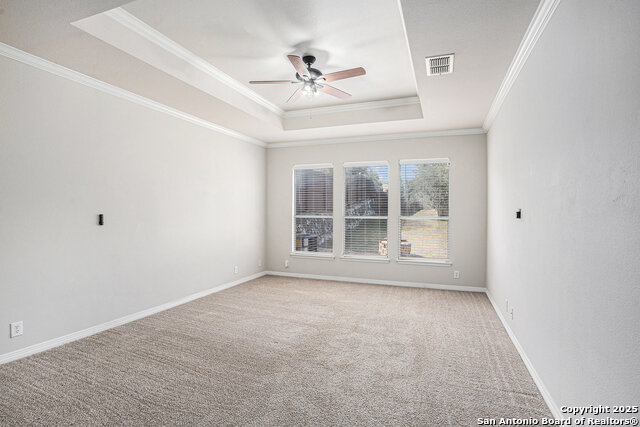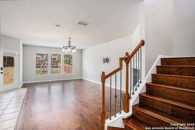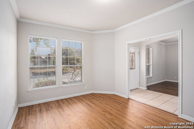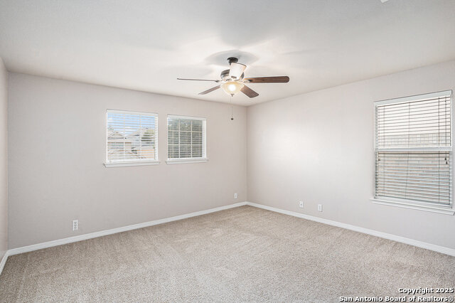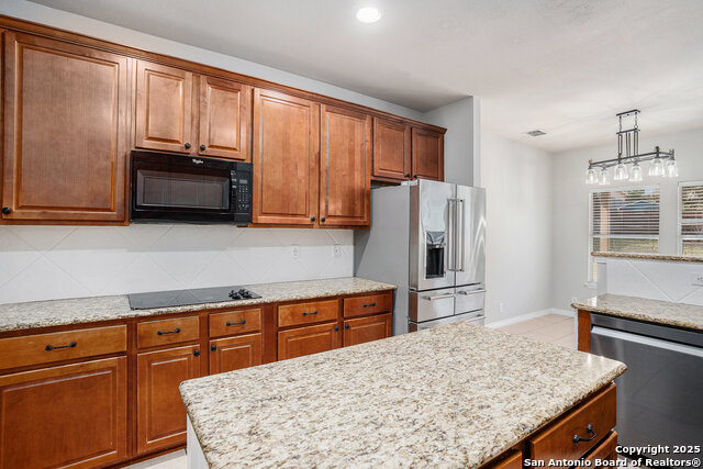 Live larger in Bulverde Village! This bright, move-in ready two-story delivers 5 bedrooms, a big upstairs game room, a private home office, and a true formal dining space-crafted for easy living and effortless entertaining. The island kitchen pops with granite counters, built-in appliances, and abundant 42" cabinetry. The main-floor primary suite is a retreat with a pop-up ceiling, crown molding, and an ensuite featuring dual vanities, garden tub, separate shower, linen storage, and a generous walk-in closet. Upstairs adds flexibility with the game room and a junior suite offering its own private bath and walk-in closet; all secondary bedrooms are well sized with walk-ins. Notable upgrades include a NEW AC (September 2025), warm wood floors, tall ceilings, a cozy fireplace, updated lighting, an oversized laundry room, water softener, and a partially planked lighted attic for extra storage. Outside, relax or entertain on the covered patio overlooking a spacious, privacy-fenced backyard. Less than 4 miles to groceries, dining, shopping, and Hwy 281-comfort, convenience, and value in one terrific package.