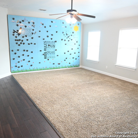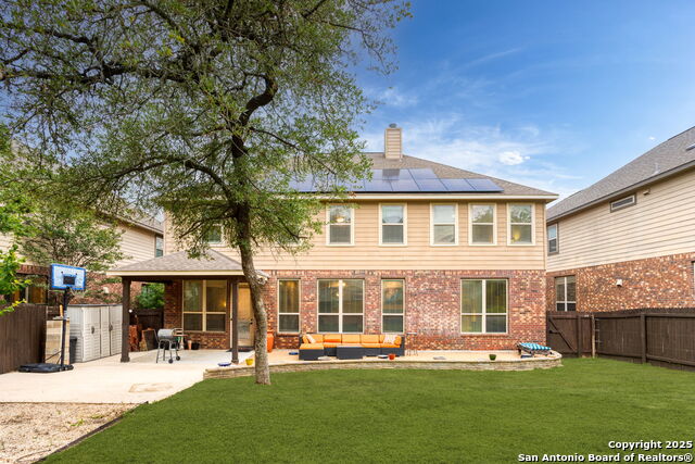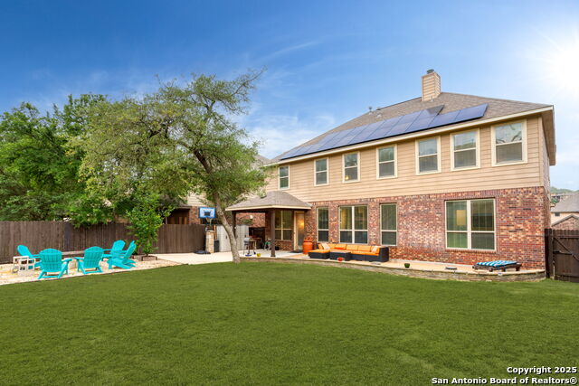 Energy efficient home with new high-end solar panel system (completely paid off) and TWO solar storage batteries, valued at $65k! Energy bills are practically nothing! Perfect for a large family, this spacious home features 5 beds/3.5 baths with beautiful wood floors upstairs and downstairs. Enjoy a downstairs mother-in-law suite, primary bedroom with oversized closet, formal dining room, dedicated home office, and large upstairs gameroom. Other energy-efficient perks include **2 new HVAC units**, **a tankless water heater** and new water softener. The extended back patio and fire pit are ideal for entertaining. Move-in ready with plenty of room to live, work, and play!
